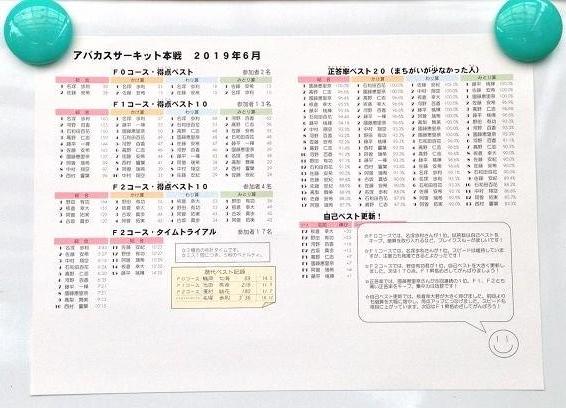 アバカスサーキット本戦〔6月〕結果を発表しました