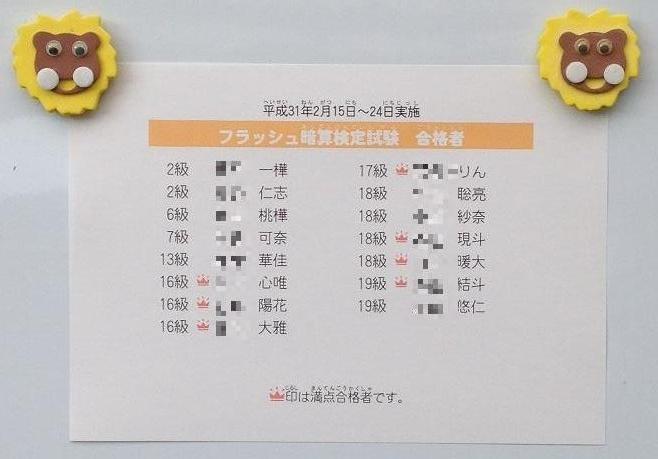 2/15~24に実施したフラッシュ暗算検定の結果を発表しました。